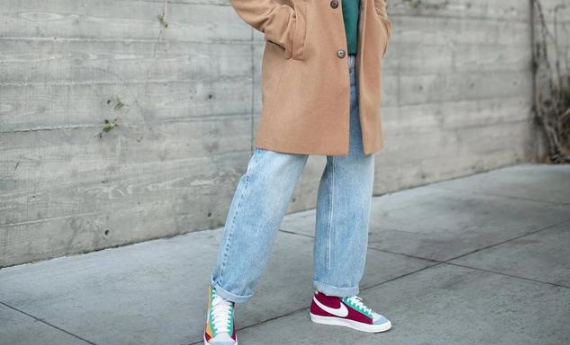 当然,如果真的喜欢选择比较宽松的裤脚款式来搭配,那么尽量将裤脚挽起来,将鞋帮以及鞋身露出来,这样的效果才会显得比较友好,避免鞋身被淹没而显得效果太突兀。