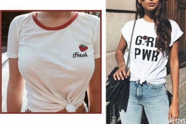 t恤是每个人衣柜里都有的衣服,t恤的穿搭风格可以很百变,有时候买的t恤太长,穿着很拖沓,可以把t恤打结,这样实在是帅气又时髦。