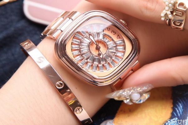 3、手表搭配多只手镯更多的女生喜欢佩戴多只手镯来衬托手表。整个手腕都会变得更丰富多彩一些,且非常抢镜,作为服装的点缀再适合不过了,非常凹造型哦。而且手表搭配多只手镯的话,其中还可以混搭一些绳编或者串珠的手链,不同的质感更容易吸引眼球。