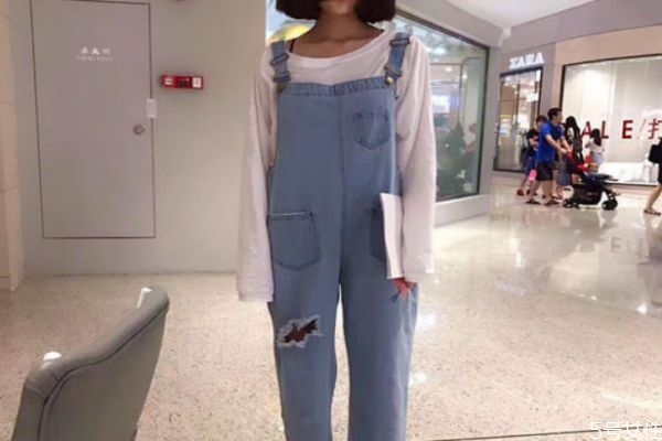 背带裤总是掉可以买两个别针,别在肩带和上衣之间,也可以选择在背后打X形的背带裤,把左边的肩带扣右边,右边的肩带扣左边。背带裤的肩带长短是可以自己调节的,背带裤肩带长了可以把肩带往后收短或修剪,要么只背一道肩带也是很有个性的穿法。