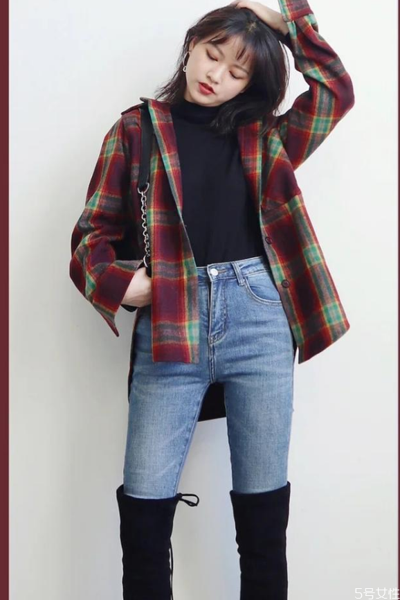 不过在搭配牛仔裤时就不要去搭配宽松偏长的内搭了,会显得有点累赘。所以小编比较推荐修身的内搭,外面不管是长款外套还是短款外套都可以,如果一定要搭长款羽绒服的话,那最好不要拉拉链,这样会更好看。