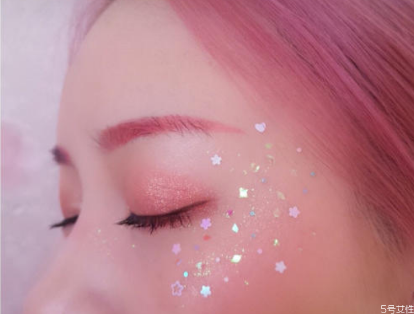 这种使用亮片装饰脸部的妆容在脸上是亮闪闪的,是很多人都喜欢的妆容。