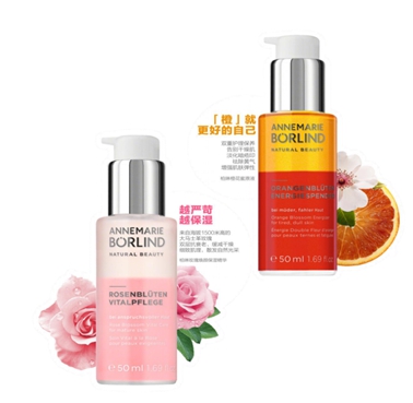 德国柏琳(安娜柏林)玫瑰焕颜保湿精华是一款高纯度双层水油分离质地产品,双重玫瑰加乘作用,提亮肤色,持久保湿,唤醒皮肤的活力,使皮肤容光焕发,明艳动人。德国柏琳(安娜柏林)橙花焕彩滋养精华由珍贵的压榨植物油和鲜花萃取物两部分组成,双重呵护肌肤,包含多种天然营养成分共同作用,为肌肤充电、使肌肤重获新生,充满活力。