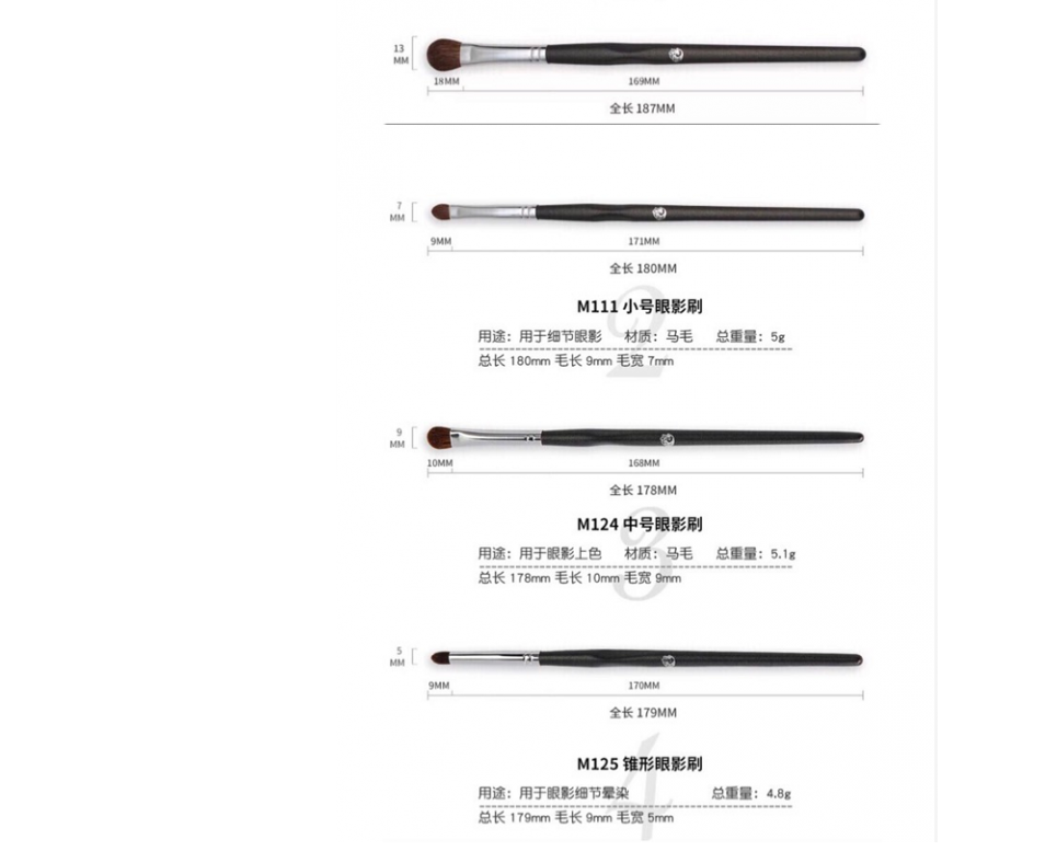 这把M124就是M110的缩小版,一样是马毛的,可以用做眼窝的加深。抓粉力很强,所以显色度很不错,不会扎眼皮。