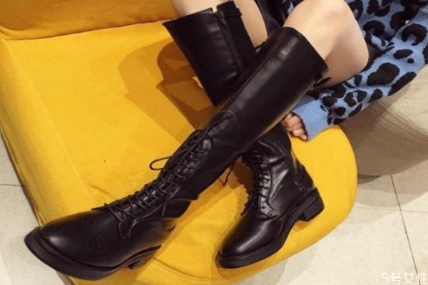如果你的腿比较粗,穿不了紧身的连袜靴的话,那就试试这款靴子吧,它的款式有点像马丁靴,但是比一般的马丁靴要长得多,这鞋子的材质是皮革的,会比较硬挺一点,不会紧贴皮肤,就不会凸显出真实的腿型了,而且鞋子还是黑色的,可以起到显瘦的作用,鞋子上面的鞋带设计很长,穿上去也是很酷的。穿这种加长版的马丁靴,最好也是搭配短裤的,而且短裤的颜色要跟鞋子的一样,这样整体看上去才会给人一种协调的感觉,不会有分层,要是你觉得穿短裤冷的话,还可以在里面穿一条光腿神器,单穿光腿神器的话,会给人一种假面感,显得很土的样子,但是搭配上这款长靴的话就不会了,因为只露出一小截的腿。
