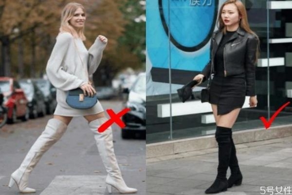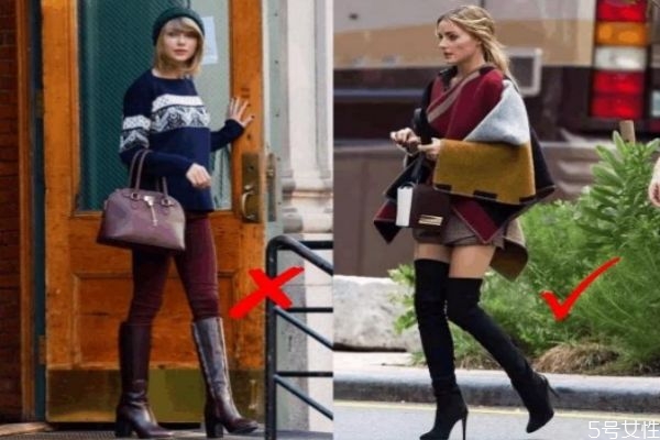 靴子的长度看似只有长靴和短靴两种,但是长靴的长度却可以细分成很多种,腿粗或者小个子女生如果选择长靴不符合自己的身材的话,就会穿出五分的糟糕比例,比如不过膝的中长靴,靴筒恰好终止在了小腿和膝盖之间最粗的部分,让这一段的距离和宽度都显得非常突兀,比例不协调,营造出下半身非常胖并且比例差的视觉效果,所以腿粗或者腿短的妹子们选择靴子的时候,要么选择露出脚踝的短靴,要么干脆选择过膝靴为主。