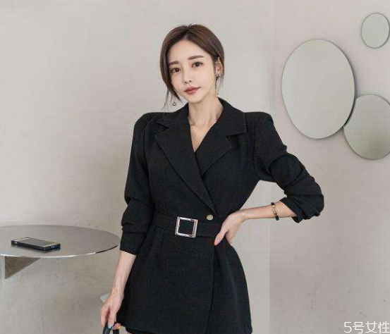 “下衣失踪”是非常常见的一种穿法,穿西装是适当的露出一点肌肤,削弱了西装的正式感,还多了一点性感,而且很显高,建议小个子女生这样穿。西装+长靴也是不错的选择,而且及膝的长靴可以在一定程度上修饰腿部线条。