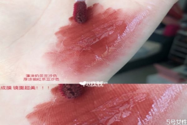 绝美的焦糖奶茶色,日常上班、约会、见长辈都不会出错的颜色,很少女,而且黄皮无压力。玻璃唇的效果真的太爱了!涂在嘴上嘴巴一下子敲饱满,嘟嘟的~而且成膜,不太容易掉,通透感实在是无敌了!带着淡淡的葡萄味,甜甜的,夏天真的就很百搭哦~