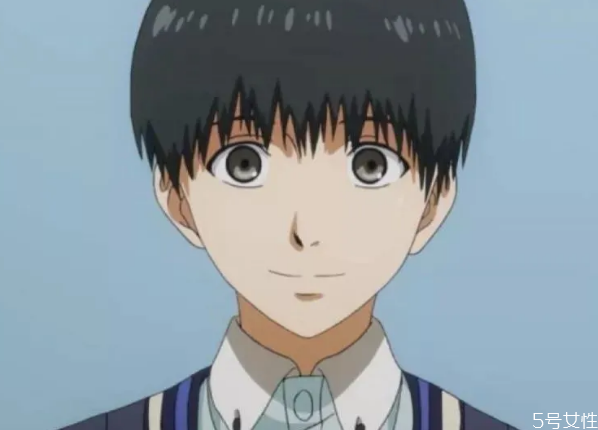 最初黑头发的金木的发型是类似锅盖的造型,只不过发尾是碎发,这个发型让金木看起来乖乖的,散发着无害的气息。