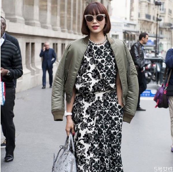 天冷了,冷到完全不想考虑太多衣服搭配,那就直接飞行员夹克+one piece连衣裙咯?!颜色鲜艳的连衣裙或者是纯色连衣裙,搭飞行员夹克都没有问题,有时候会有意想不到的效果。