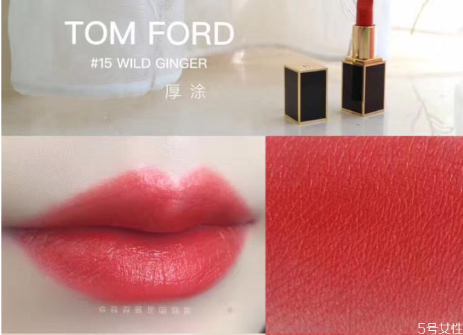 TF黑管15是橘红色,也是神仙姐姐刘亦菲的同款色号,薄涂日常有活力元气,也是非常减龄,特别朝气青春,尤其适合学生党,特别气质活泼,有很亲切感;厚涂是非常正的橘红色,很明媚的感觉。比较适合春夏,是一支比较活泼靓丽的口红。