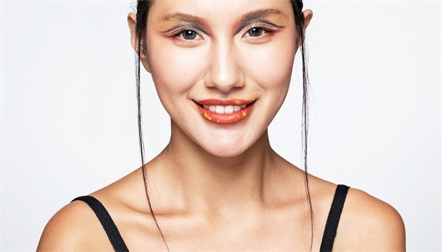 2.第二步,涂抹唇膏后,以指腹轻轻晕染,晕染出想要的厚薄与色泽。