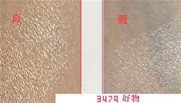 正品高光是香槟色,像是浅金色,细闪很明显,闻起来也有淡淡的香味;假货则是偏银色,与金色不沾边,粉质比较粗,闻起来的香味浓烈,刺鼻。