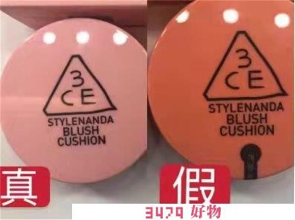 关于3ce腮红真假辨别图片,我们可以仔细看一下,正品腮红盒子的正面三角形图标下面的字体相对假货的字体较小一些。在看腮红盒子的背面,正品标签上的字体是清晰的,并且每行字体都不会重叠在一起,而假货的字体相对比较模糊,并且生产日期和编号字体重叠在一起。