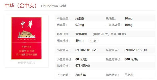 中华中支分双中支和金中支,双中支的价格比较便宜一点,金中支的价格贵一些。下面是两款烟的具体信息。