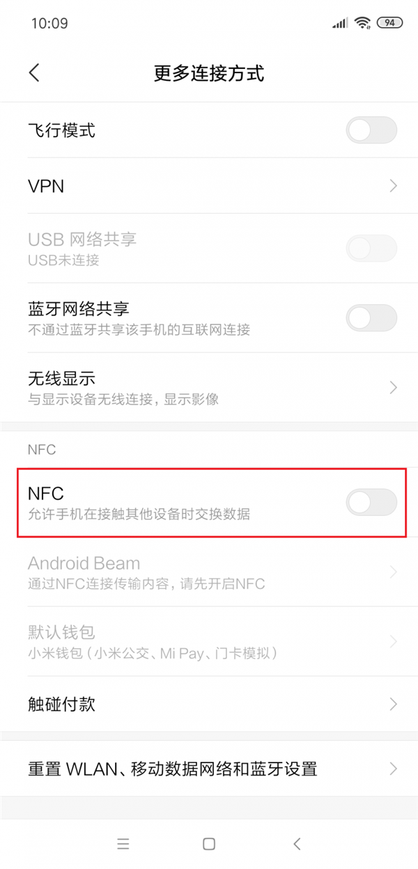 1、开启NFC,打开设置点击无线网络,在更多选项中有NFC的开关。