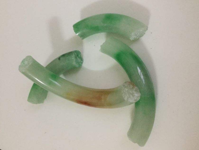 2、碎的厉害,只留下一两块较大的部分:可以去重新设计+改制成小件。手镯断裂一两处时,可以采用金镶玉的方法在断裂扣进行包金或者包银处理,把这两段链接起来,重新串成一个圆环,起到头尾衔接的作用,再加之以精美的装饰,用金镶玉的模式让手镯看起来更符合国人审美。若断成三截或者更碎的时候,在做包金处理的同时,也可以对珠宝首饰进行改制,像手镯中有明显的翠绿段(或较大的翠绿点),则可以加工成吊坠、戒面或珠链等,重新做出一个样式来。如果非常不幸,手镯不仅摔得四分五裂,而且拼不完整了,那只能进行适当的镂空设计。虽然看起来有些奇怪,但戴在手上还是很不错的。