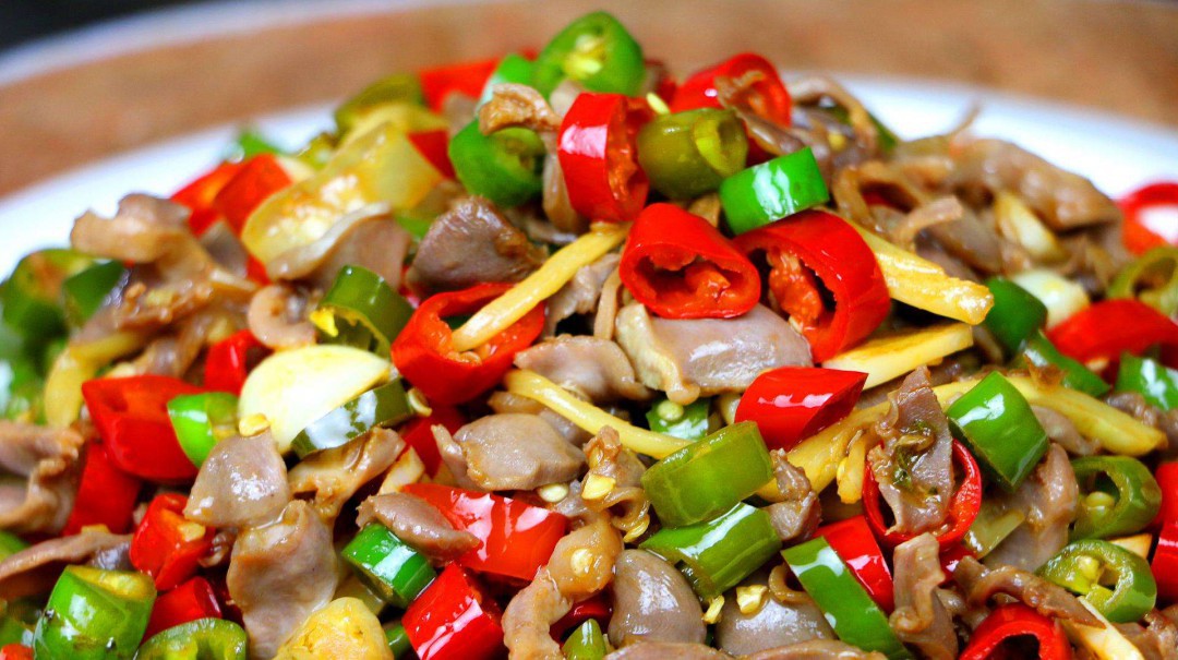 1、鸡胗可以和剁椒搭配,要把鸡胗以及鸡心先清洗干净,血水去除,把油脂部分去除,然后再切开鸡胗,再切成片状,反复清洗,放进盘子里面,准备一些蒜,生姜,大葱,剁椒,锅里面加入适量的凉水,鸡心鸡胗放进去,再加入花雕酒,葱段,生姜片煮开浮沫撇掉,鸡心鸡胗放进盘子里面,另外准备一个锅子加入油,等到花椒粒炸香以后就捞出来,再加入大蒜,生姜,大葱爆香,加入红剁椒绿剁椒,鸡胗,鸡心翻炒均匀,再把酱油放进去,加一些盐糖翻炒到汁水全部裹在鸡胗以及鸡心上面,变成棕红色就可以盛出来吃了。